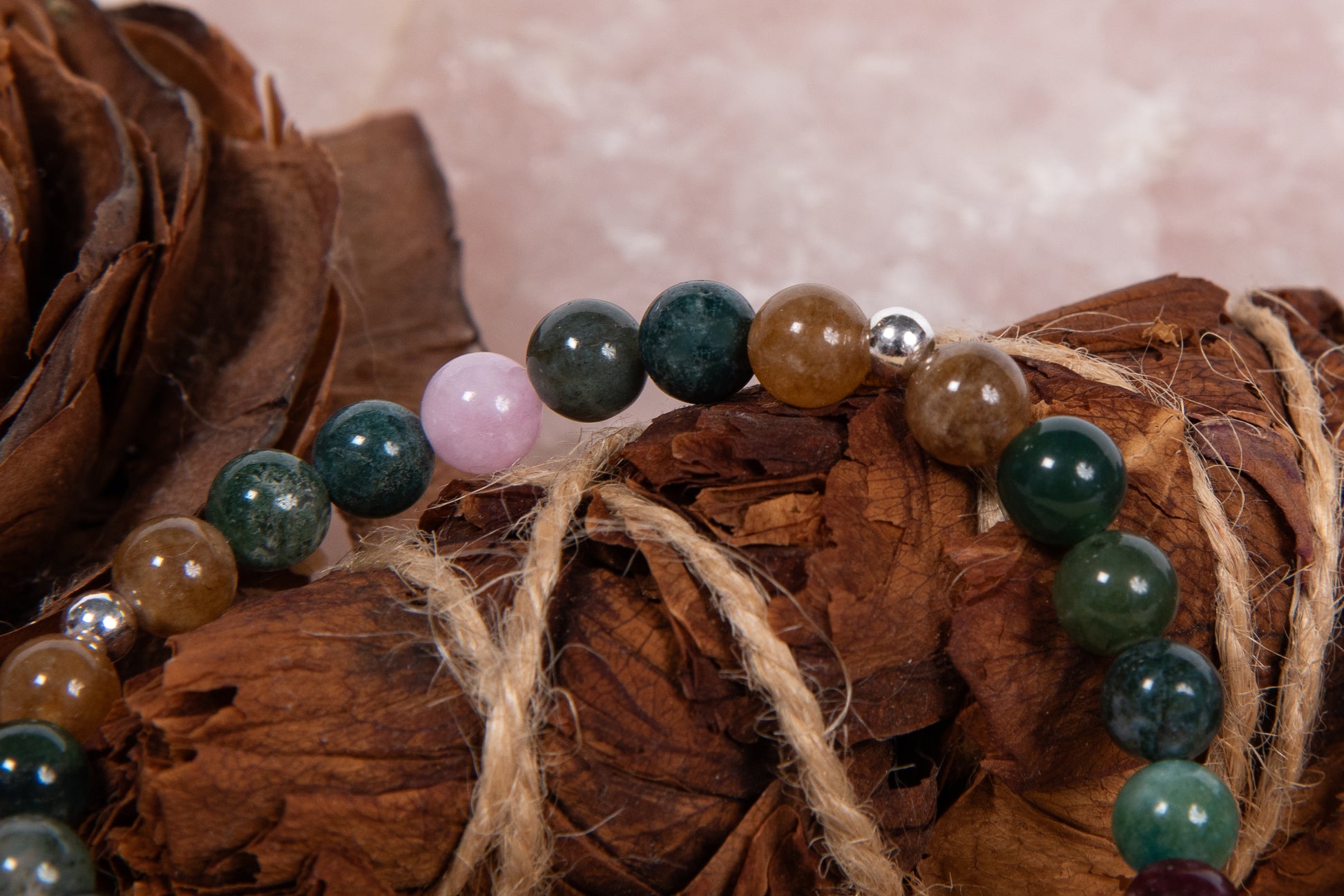 Agata muschiata, tormalina naturale vari colori, kunzite, lava, argento 925