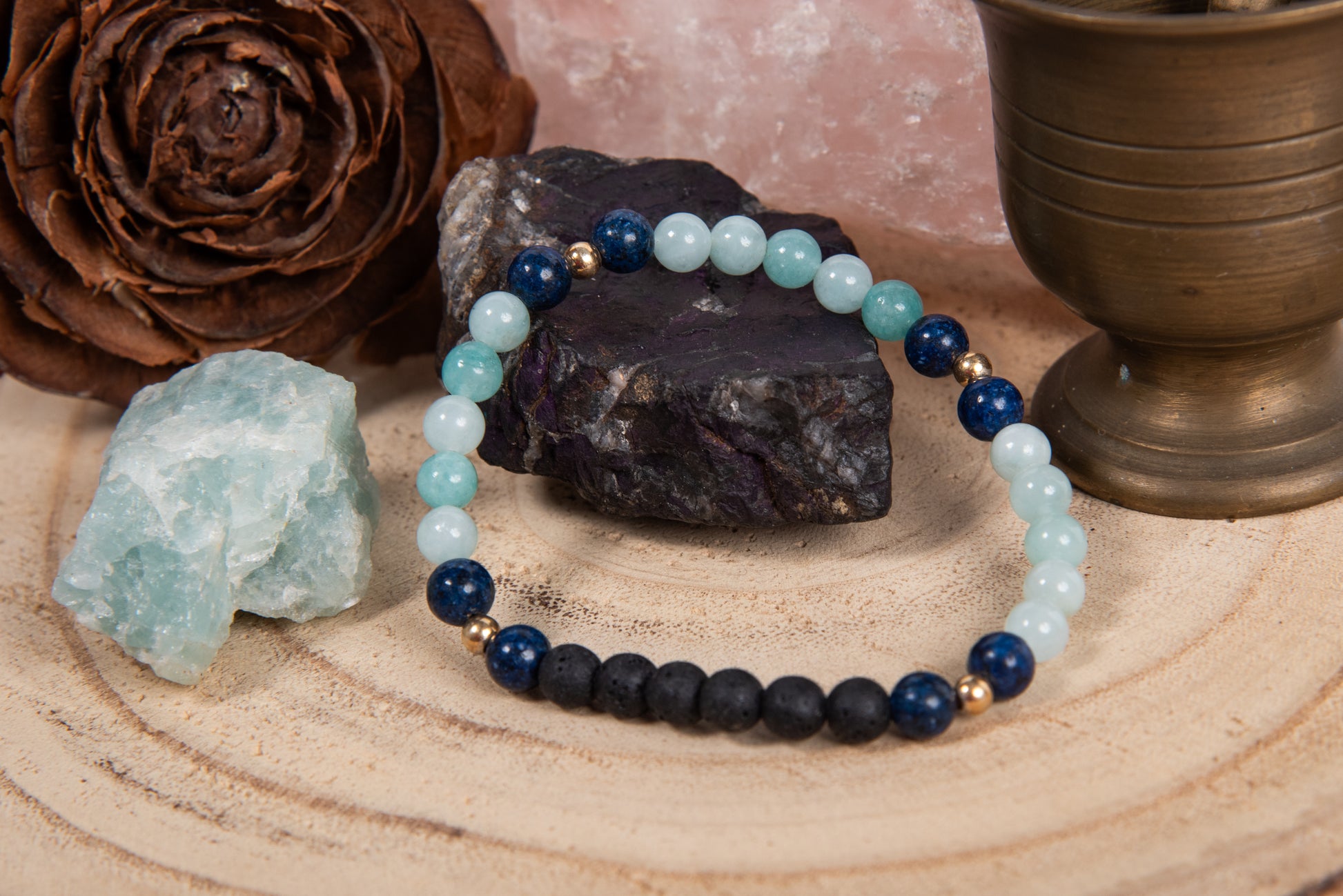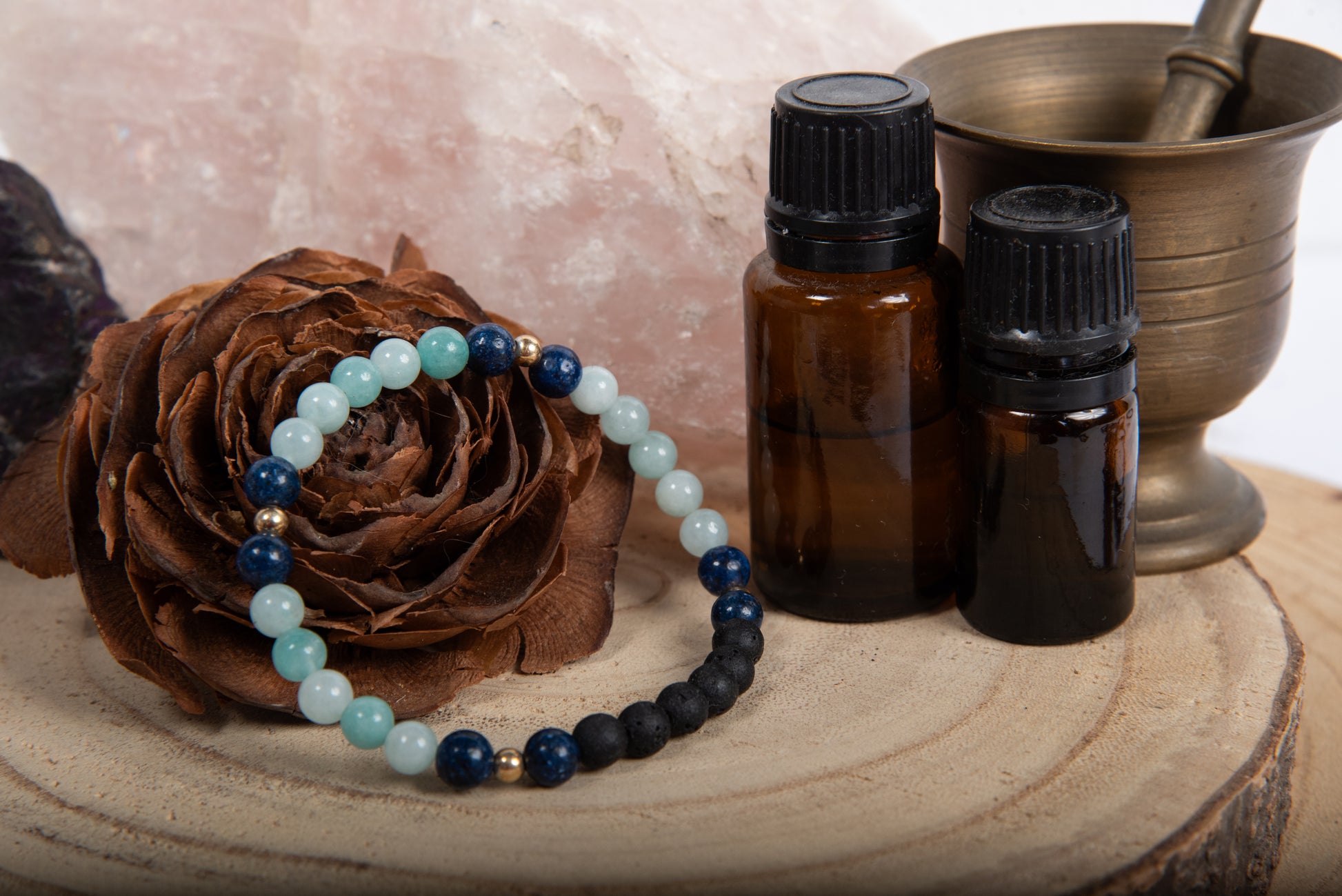 Se vuoi indossare il bracciale con l'aggiunta di un olio essenziale avrai il doppio beneficio dato dalle pietre dure e dallo sprigionarsi dell'essenza del tuo olio preferito.
