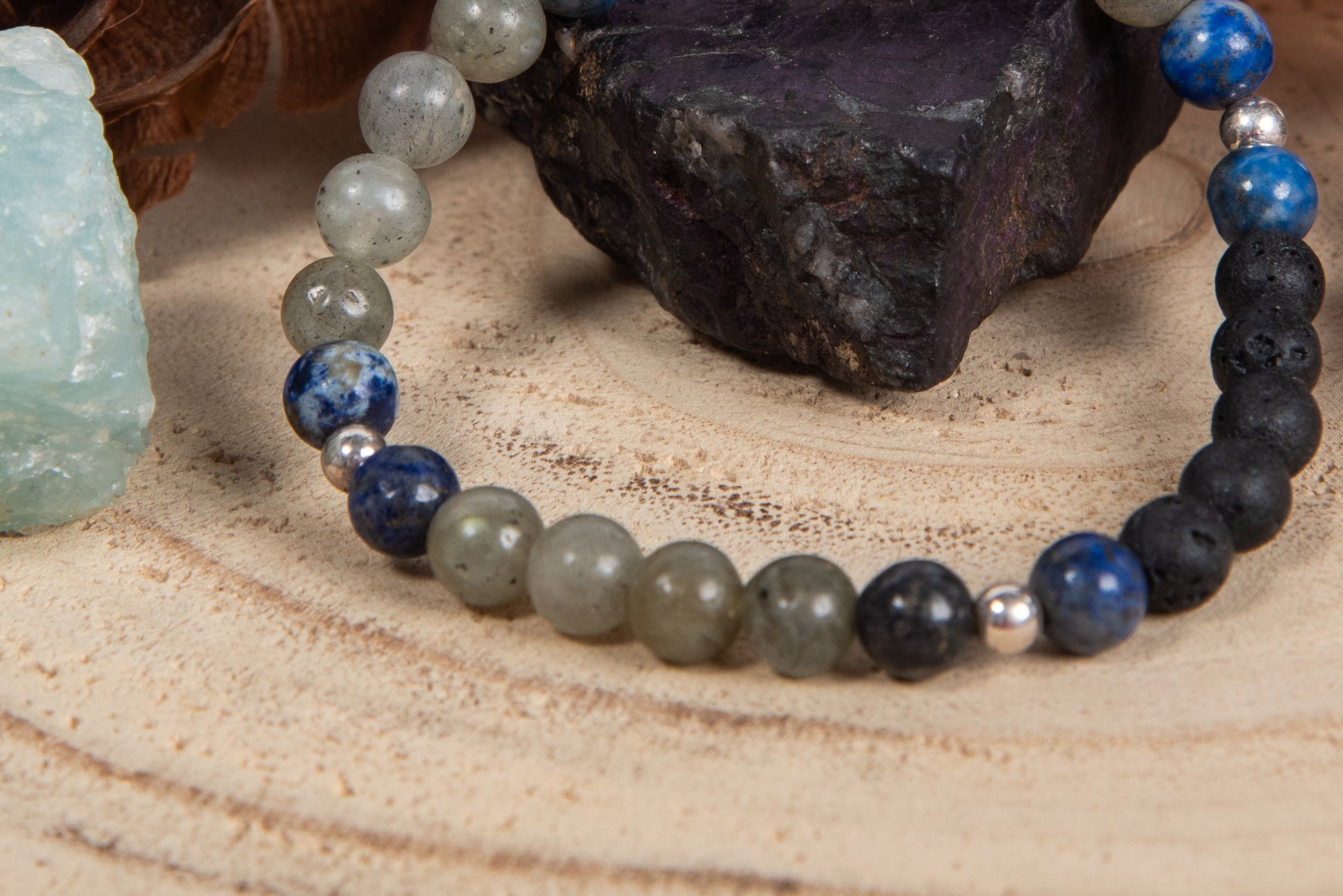 Lapislazzuli, labradorite, lava, argento 925