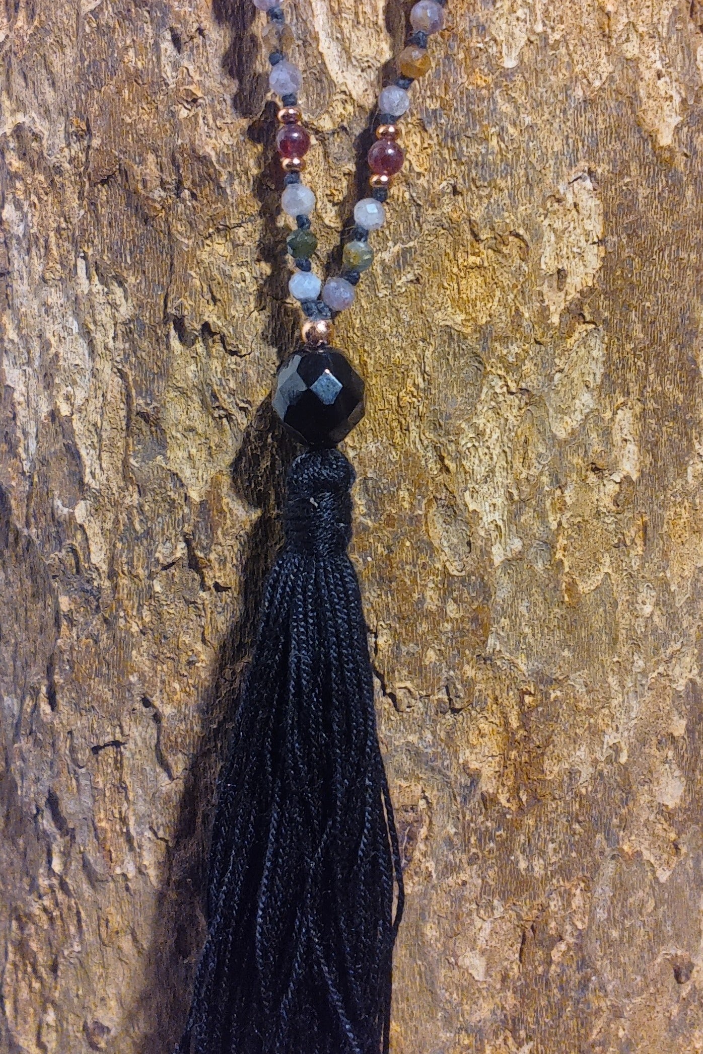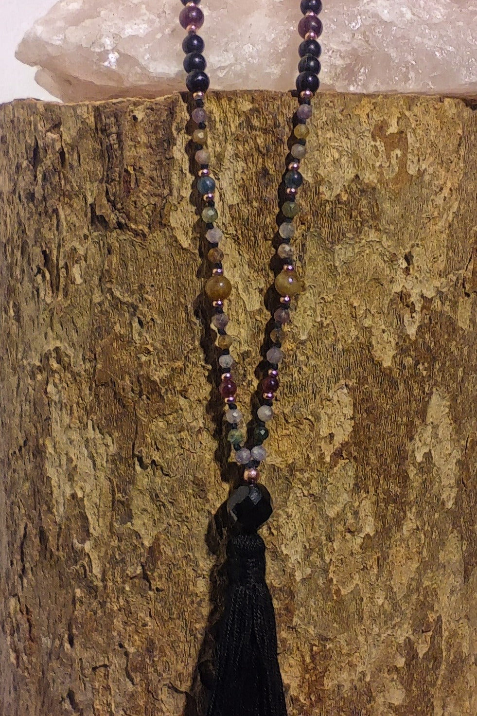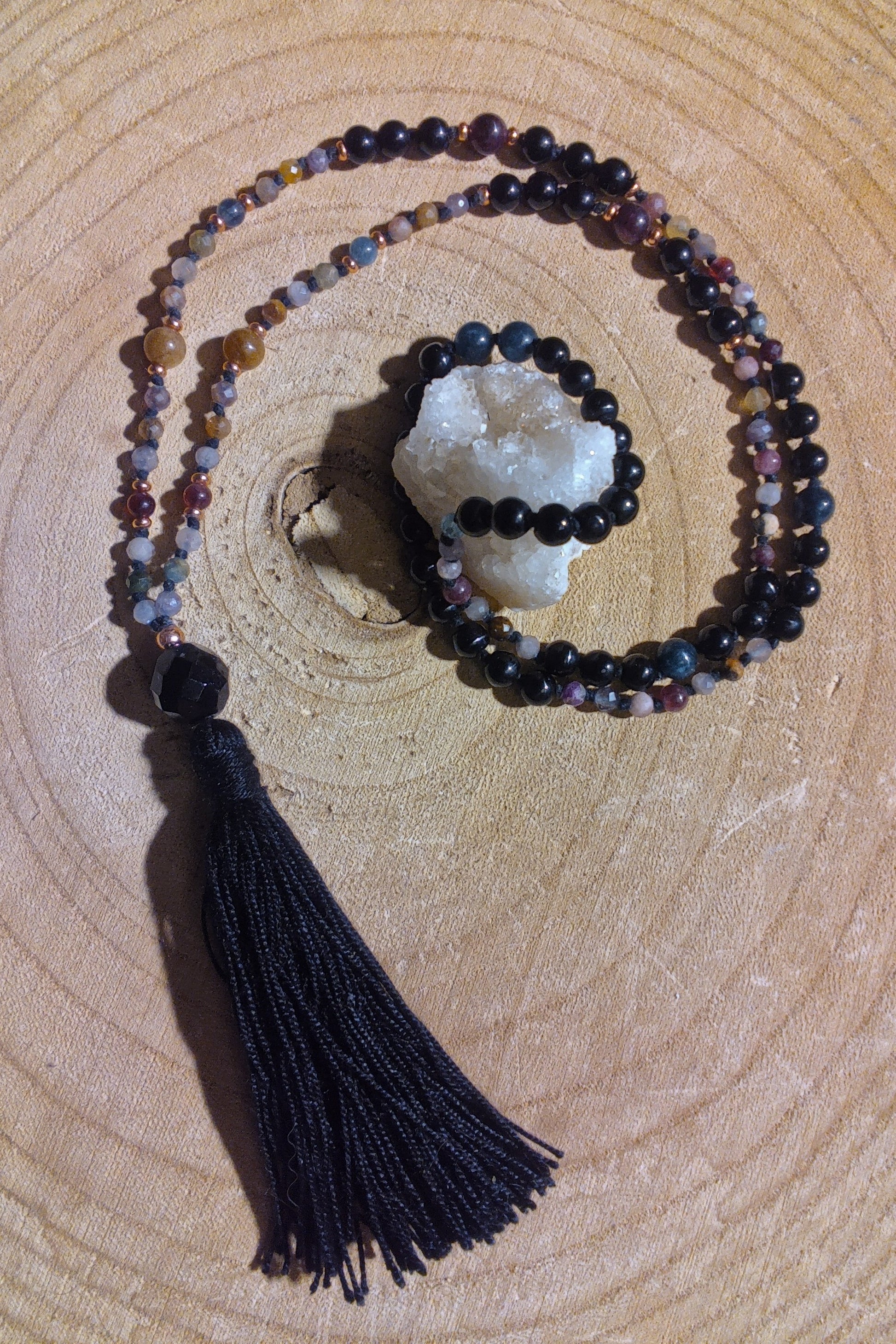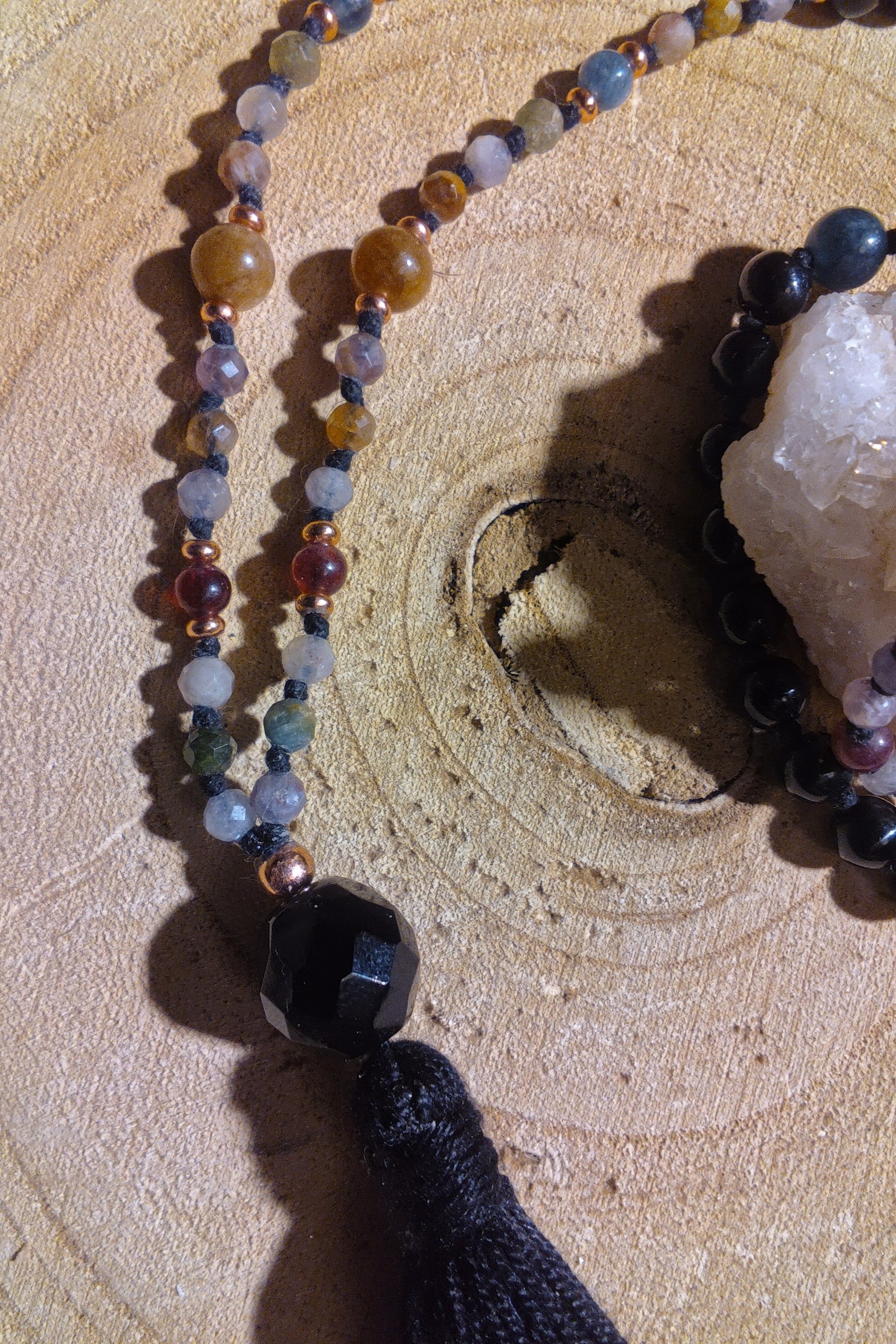 Mala 108 perle Tormalina naturale vari colori e Onice, Pietra Guru Onice, Rame