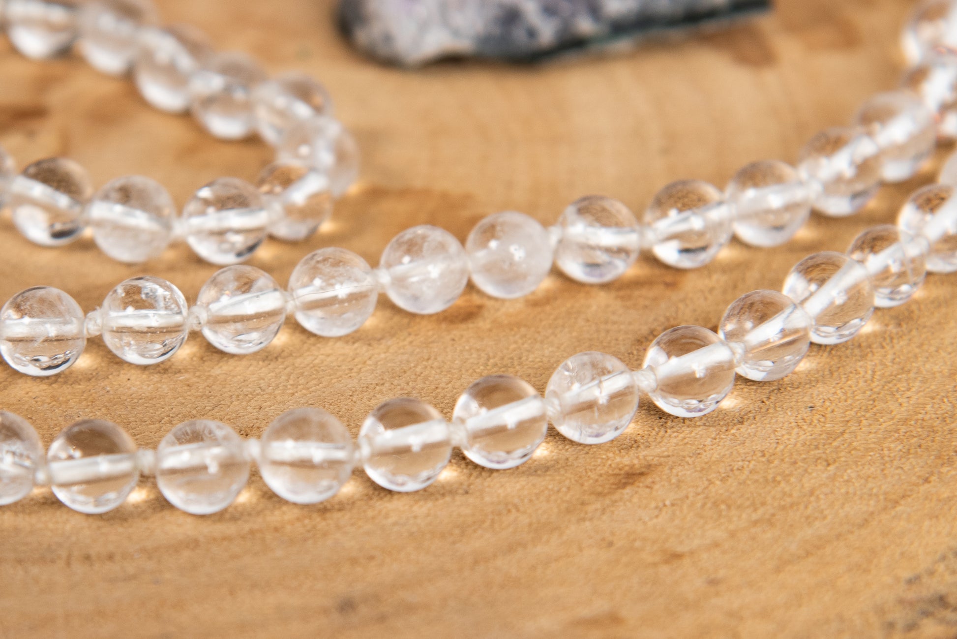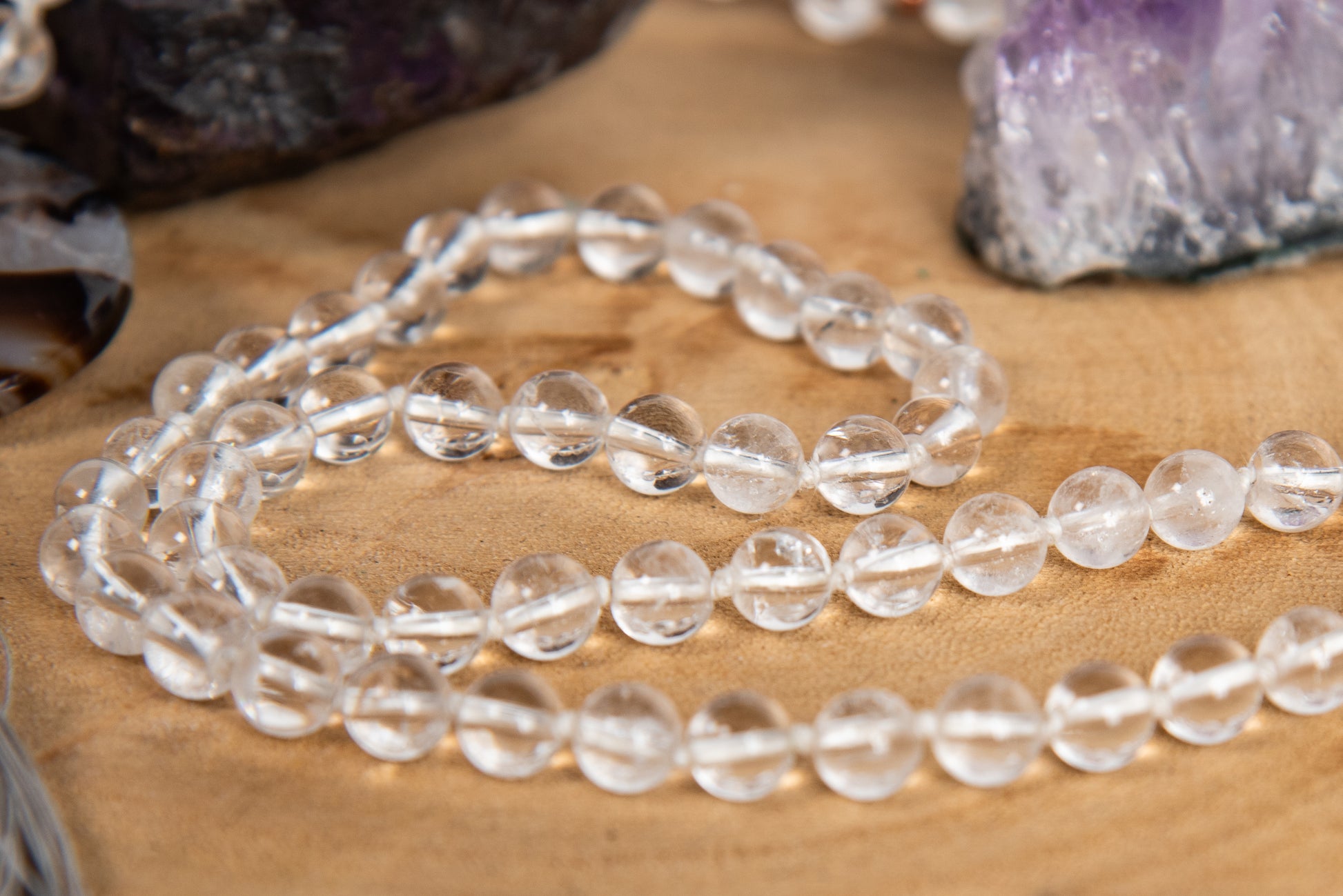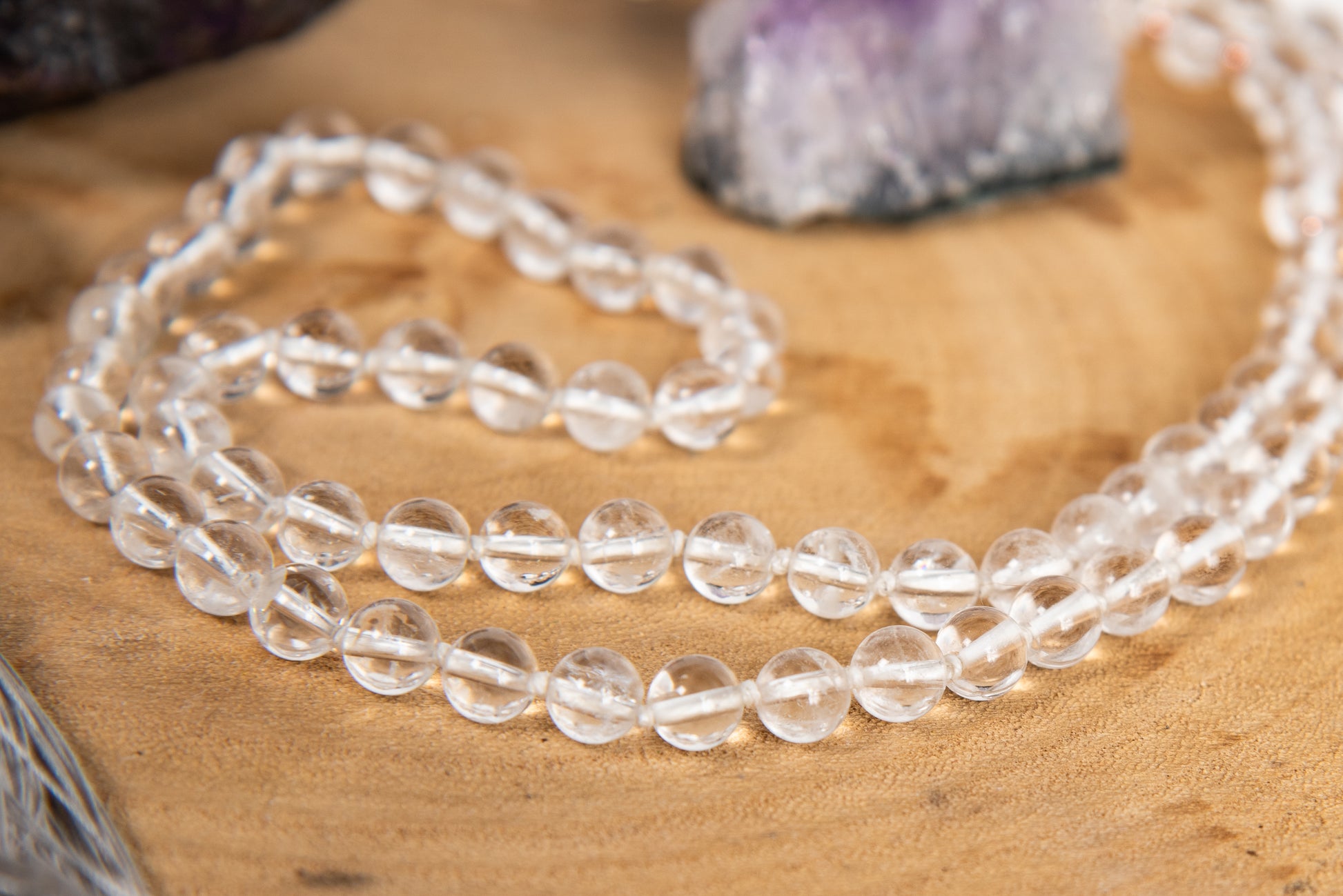 Mala collana da meditazione in Cristallo di Rocca, Pietra Guru Agata, Rame