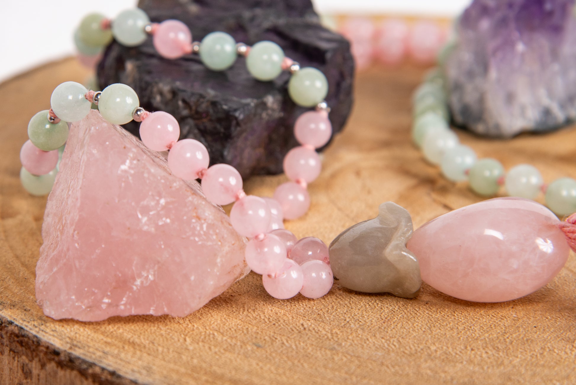 Mala in Giadeite, Quarzo rosa e rame