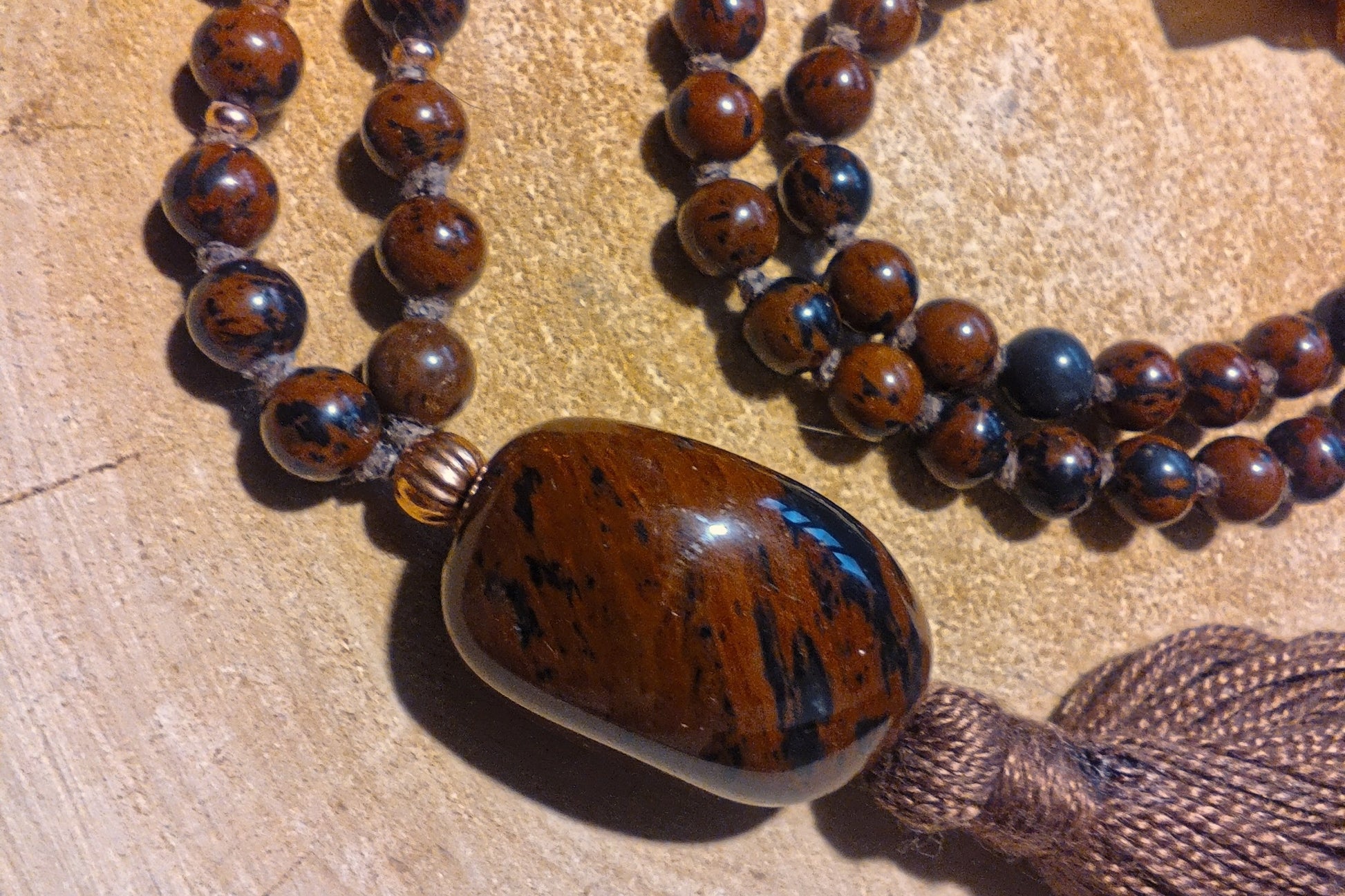 Mala in Ossidiana mogano, Pietra Guru Ossidiana Mogano, Rame