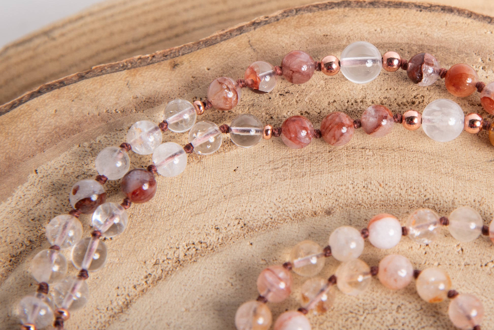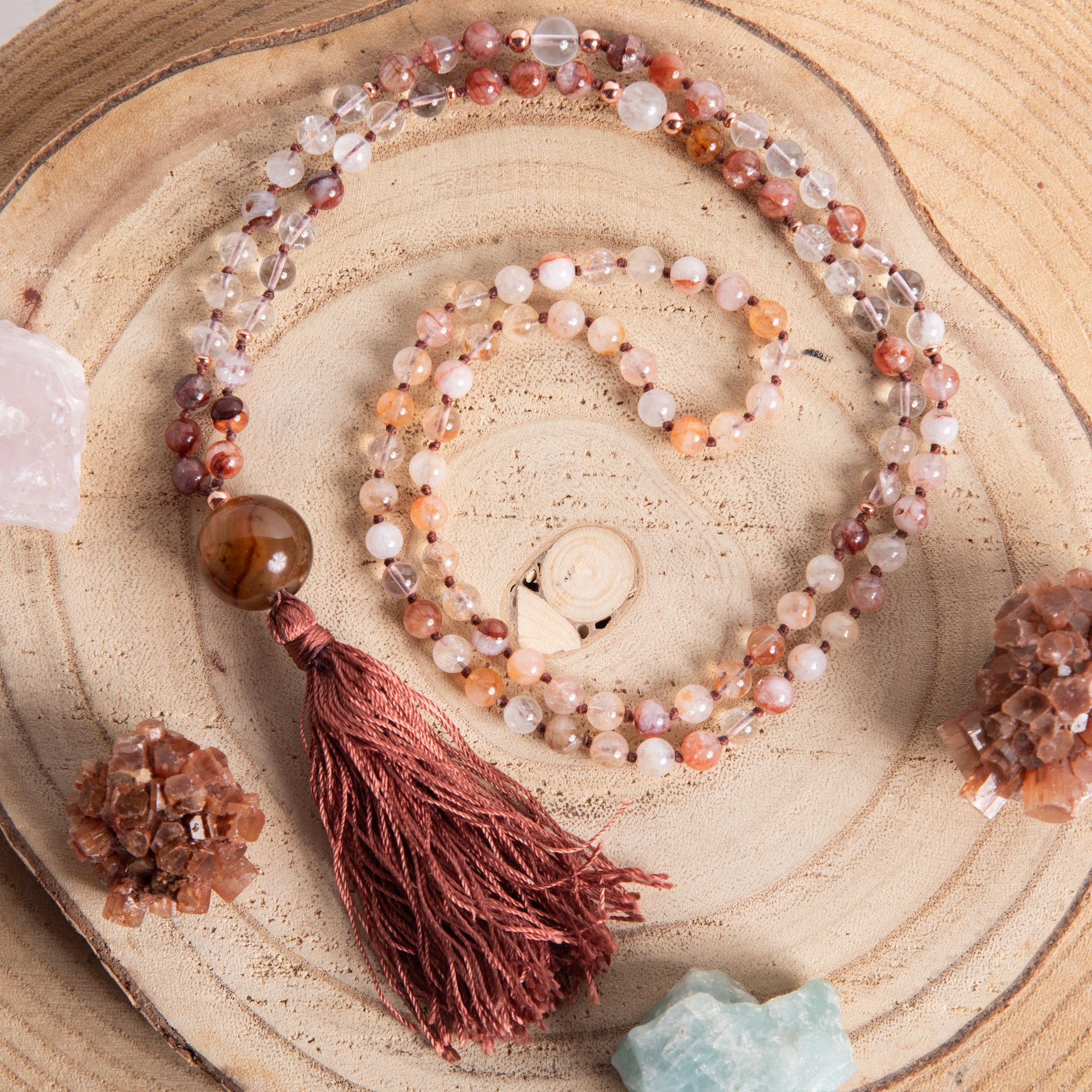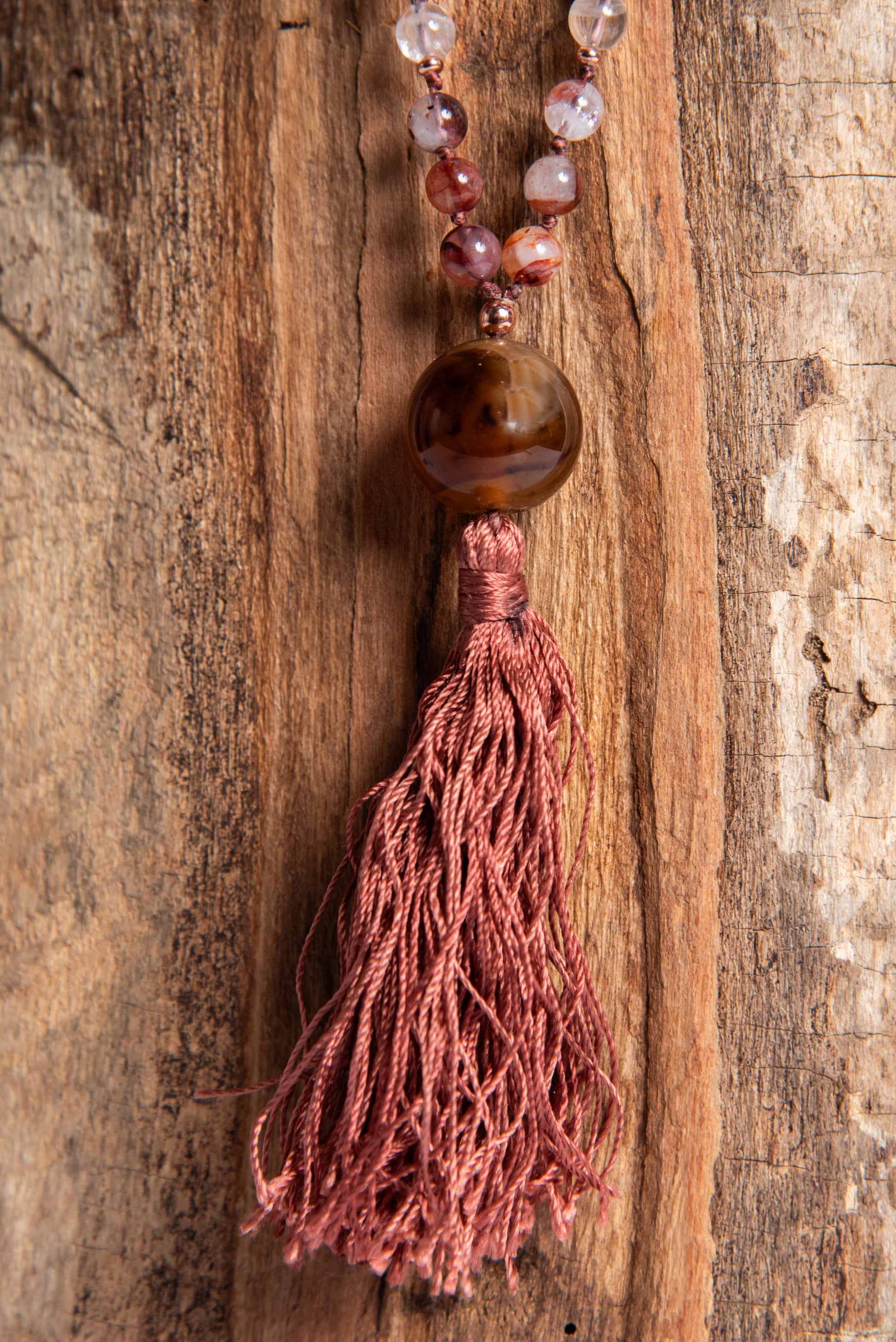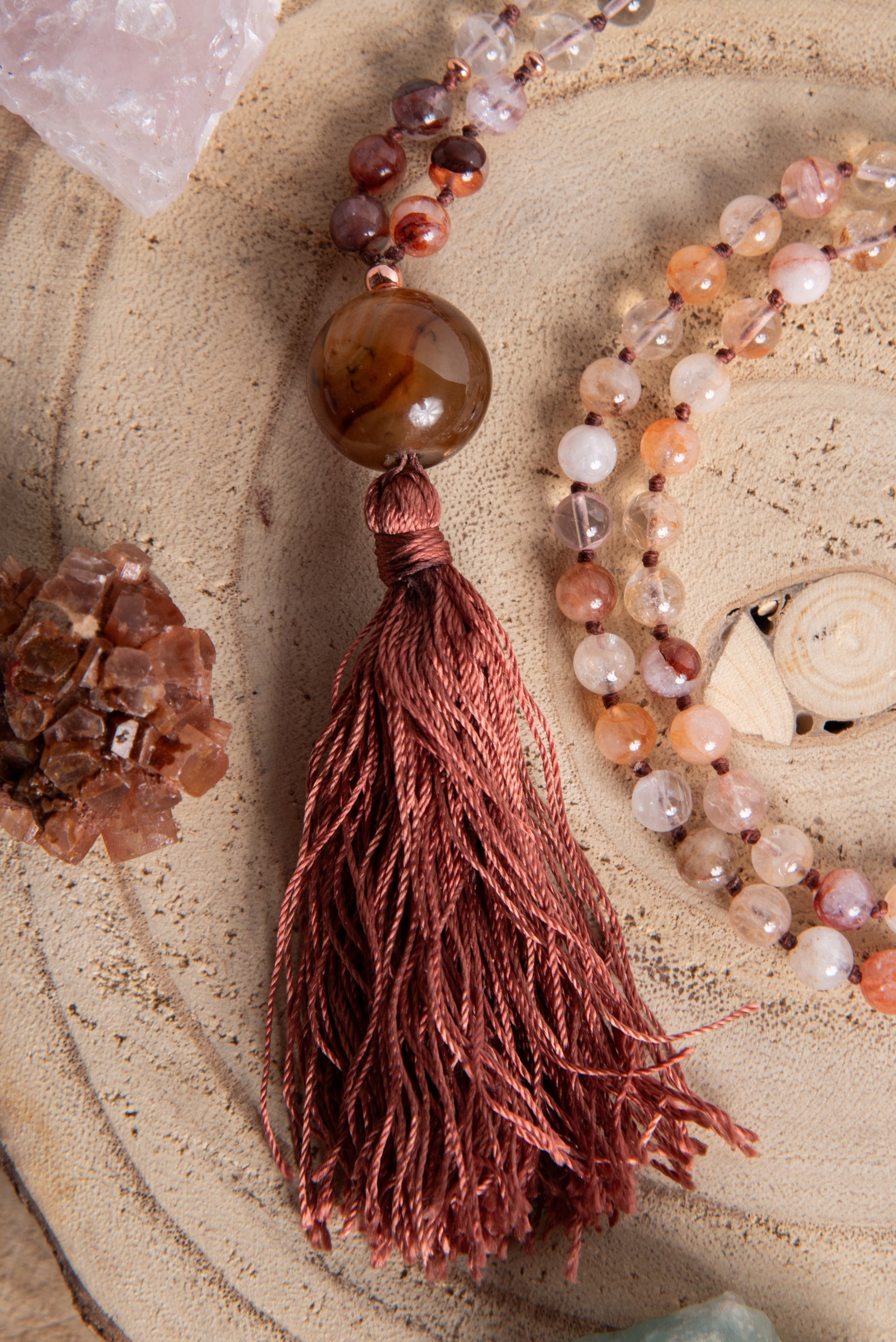 Mala in Quarzo Ematoide, Pietra Guru Agata, Rame