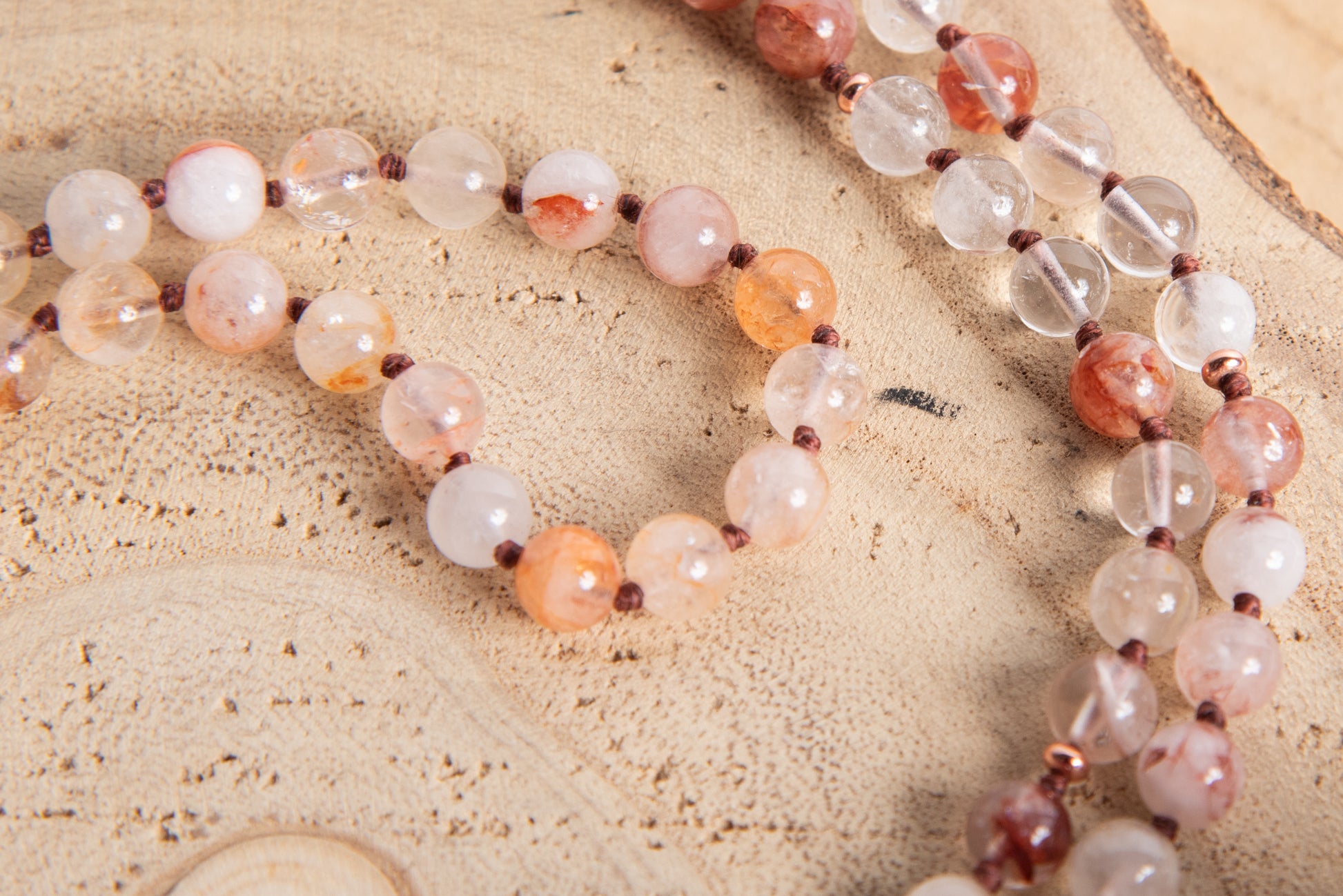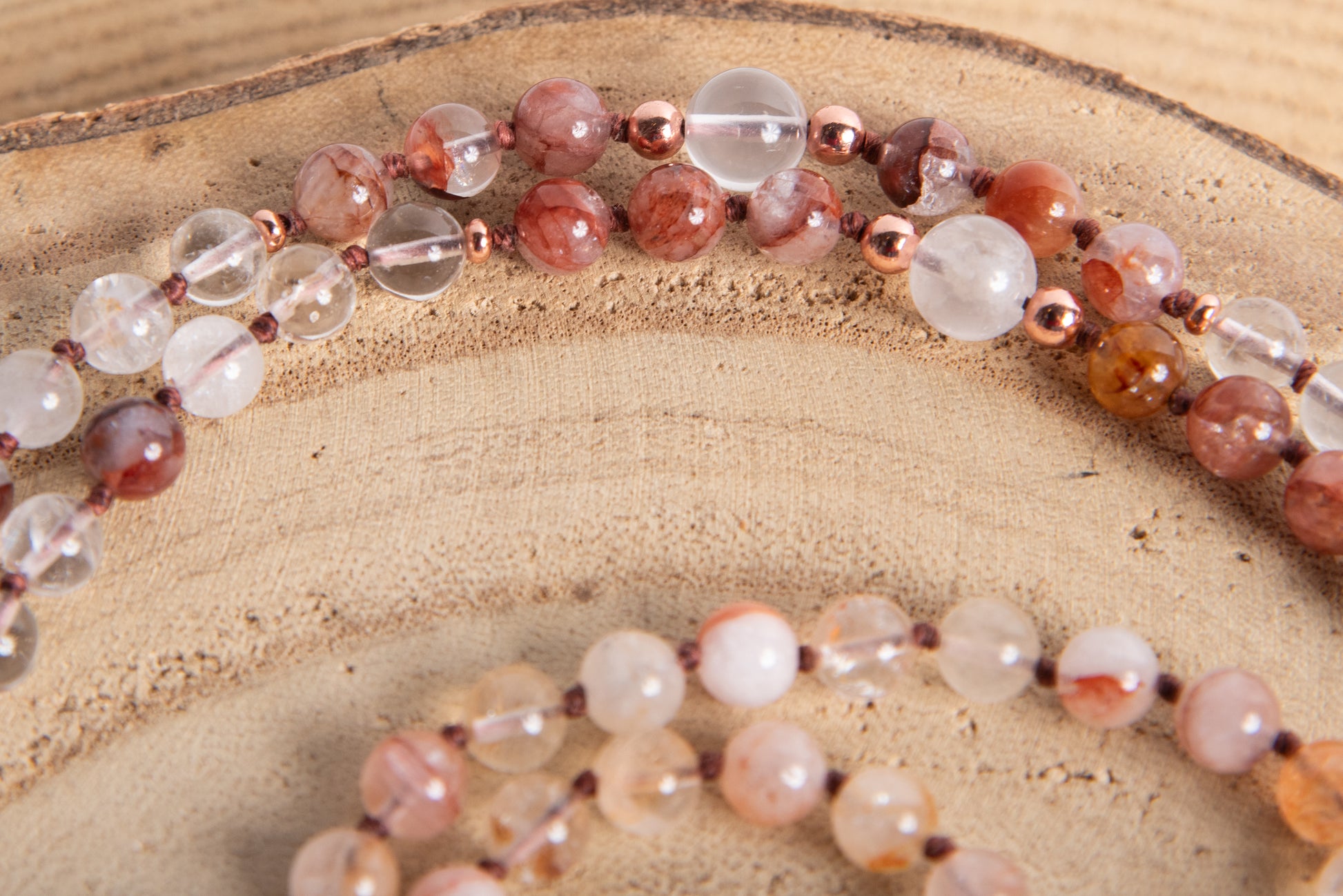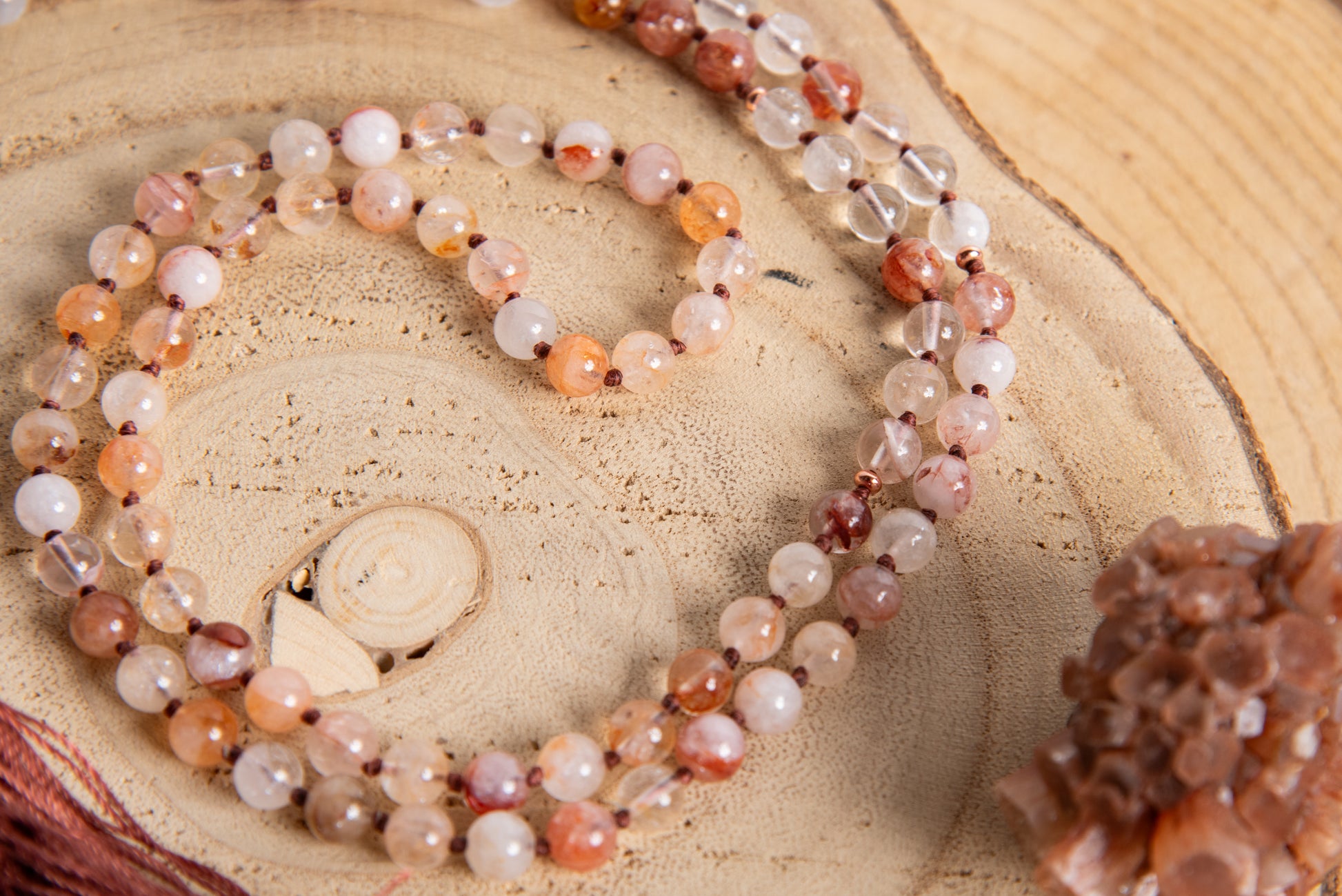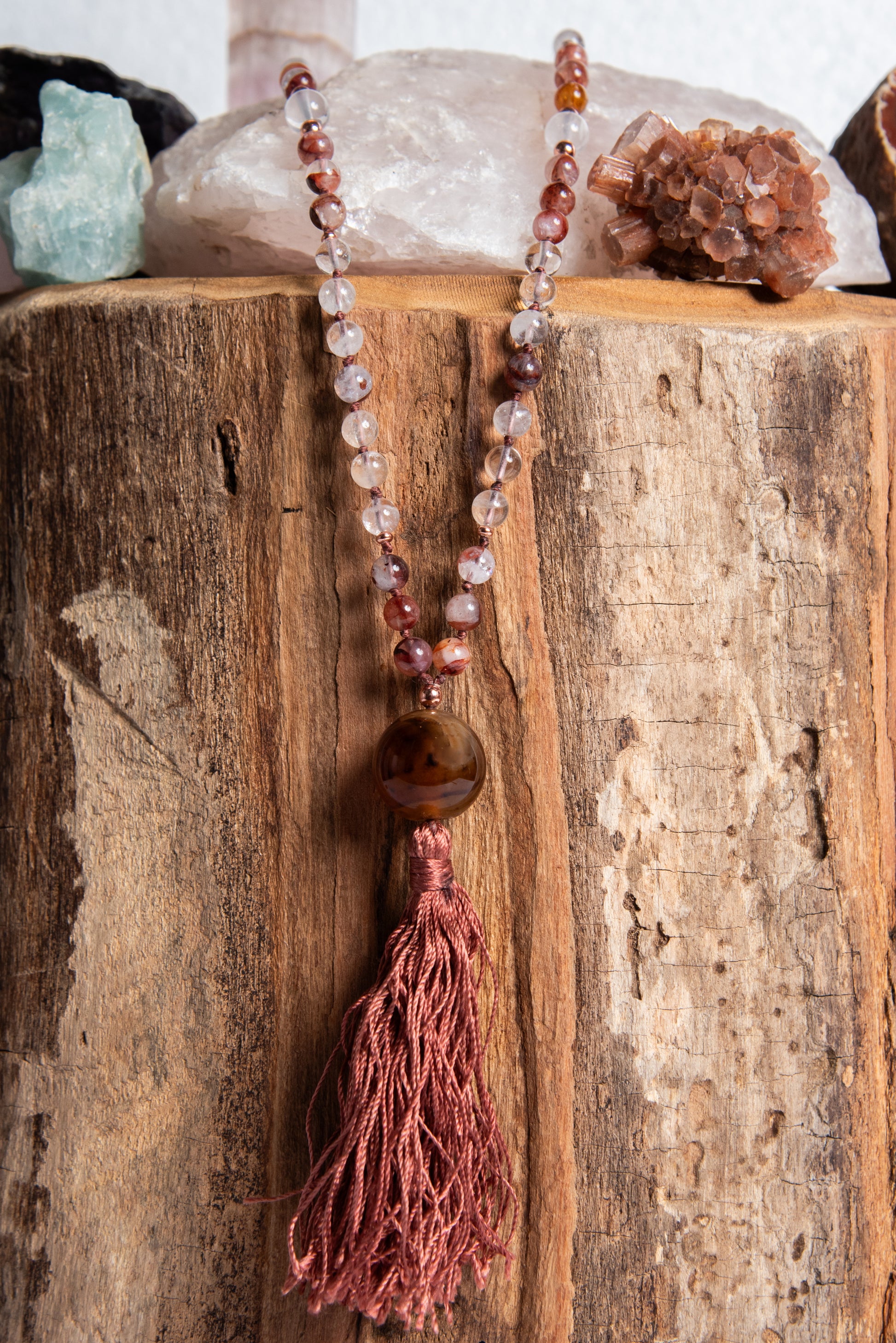 Mala in Quarzo Ematoide, Pietra Guru Agata, Rame