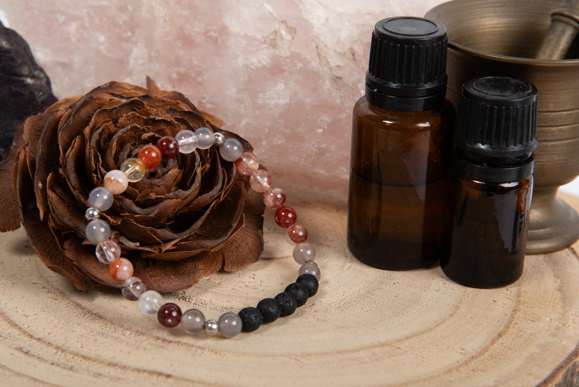 Se vuoi indossare il bracciale con l'aggiunta di un olio essenziale avrai il doppio beneficio dato dalle pietre dure e dallo sprigionarsi dell'essenza del tuo olio preferito.