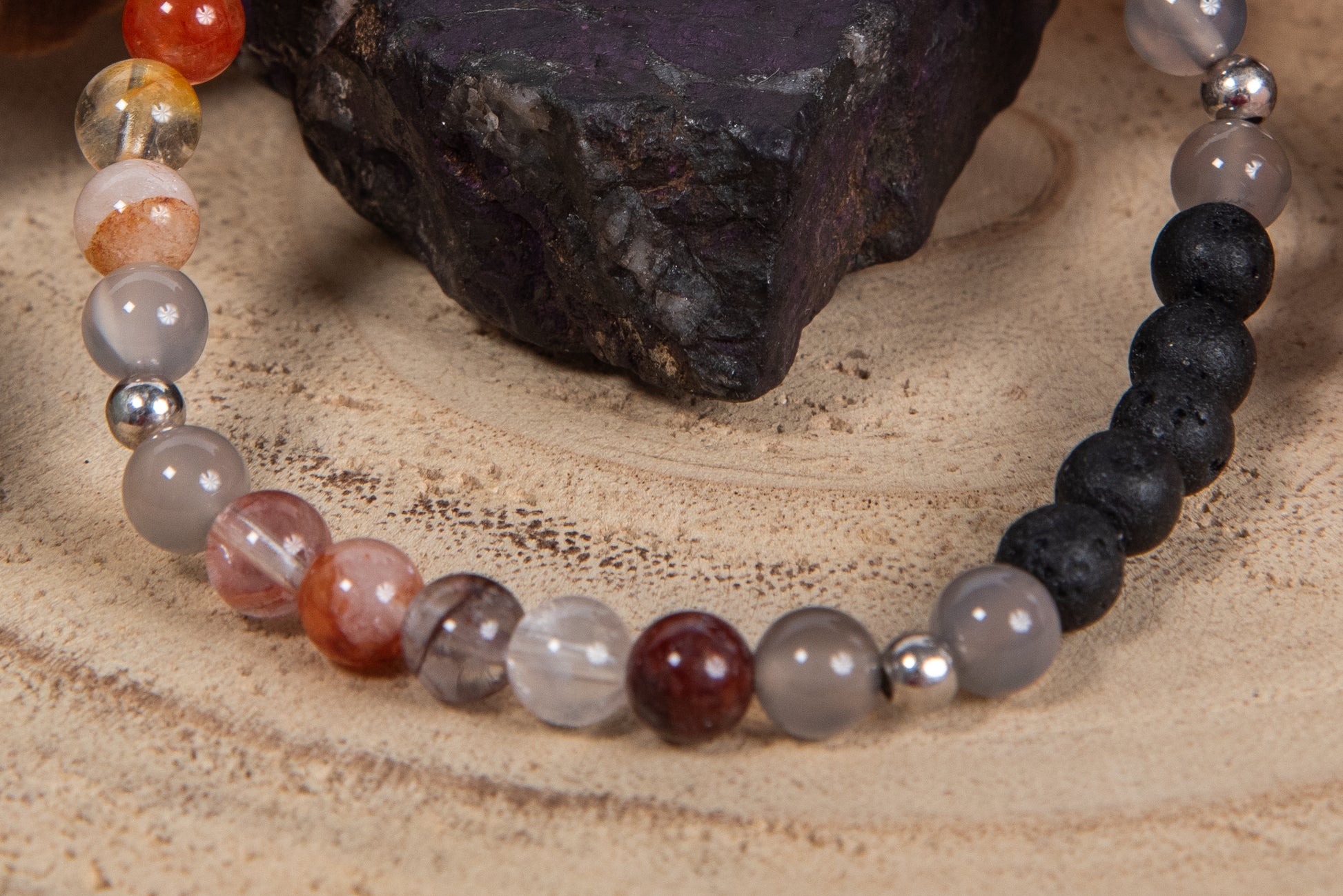 - Pietre dure 6 mm, pietra lavica 6 mm, perline argento 925, filo elastico resistente di fattura statunitense Beadalon.