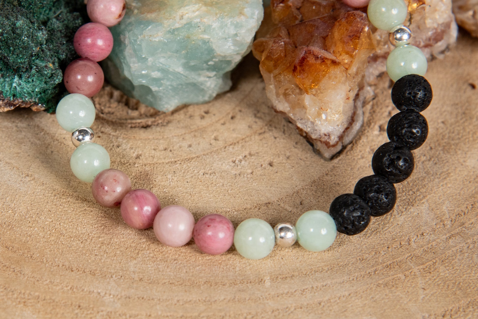 Rodonite, giadeite, lava, argento 925